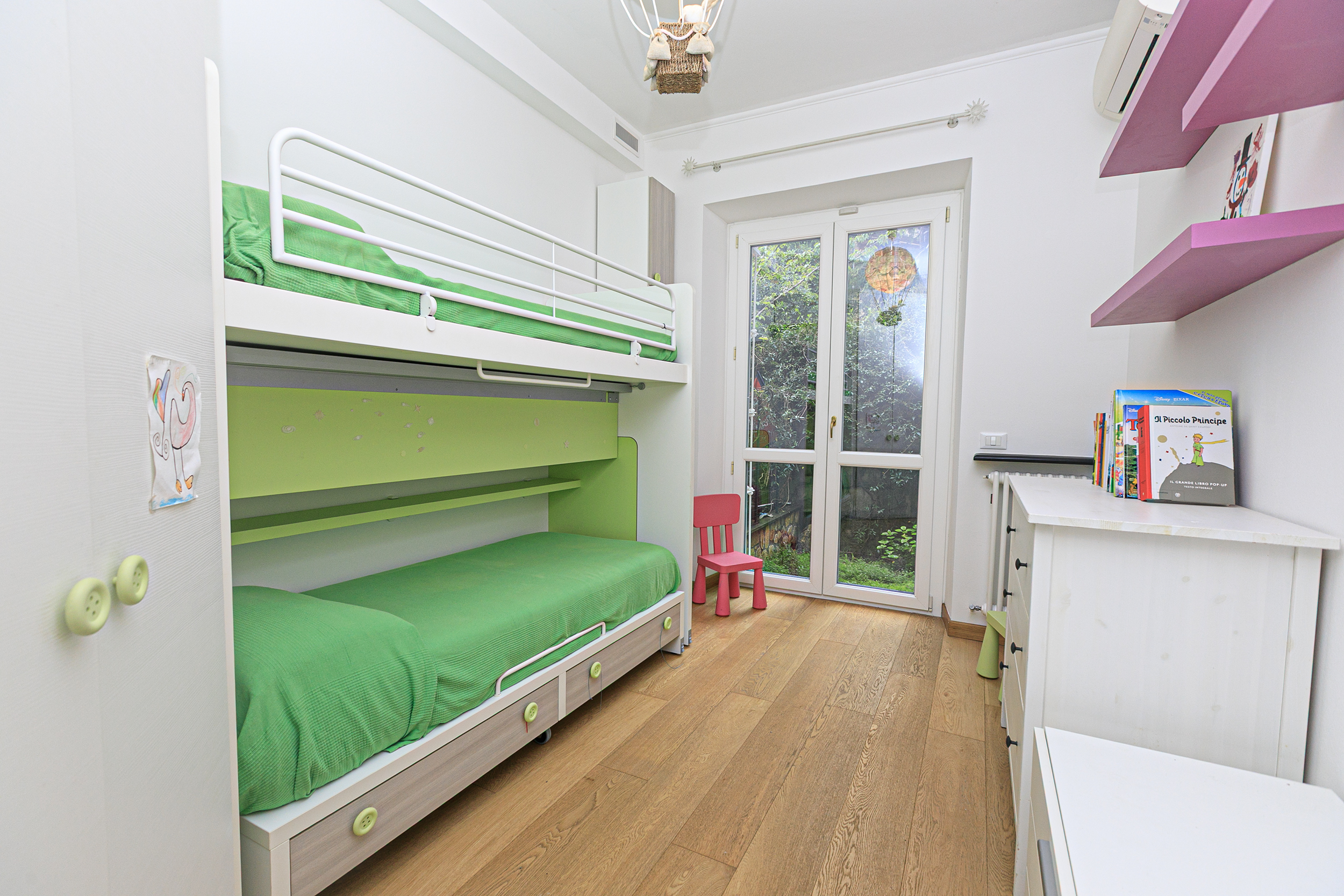 Qui, al piano terra di una palazzina in ordine nelle parti comuni, si trova l’appartamento che ha una superficie di circa 95 mq così divisi: ingresso in un’ampia zona giorno con: ZONA PRANZO, SALOTTO CON TV e grande CUCINA A VISTA, qui troviamo la prima porta finestra che da sul GIARDINO, poi DISIMPEGNO e CAMERA da LETTO MATRIMONIALE, CAMERA da LETTO SINGOLA con letto a castello e seconda porta finestra sull’esterno, BAGNO PADRONALE, BAGNO DI SERVIZIO e RIPOSTIGLIO. Il giardino, vivibile e attrezzato circonda tutta la proprietà. Riscaldamento autonomo. Completamente arredato e attrezzato.