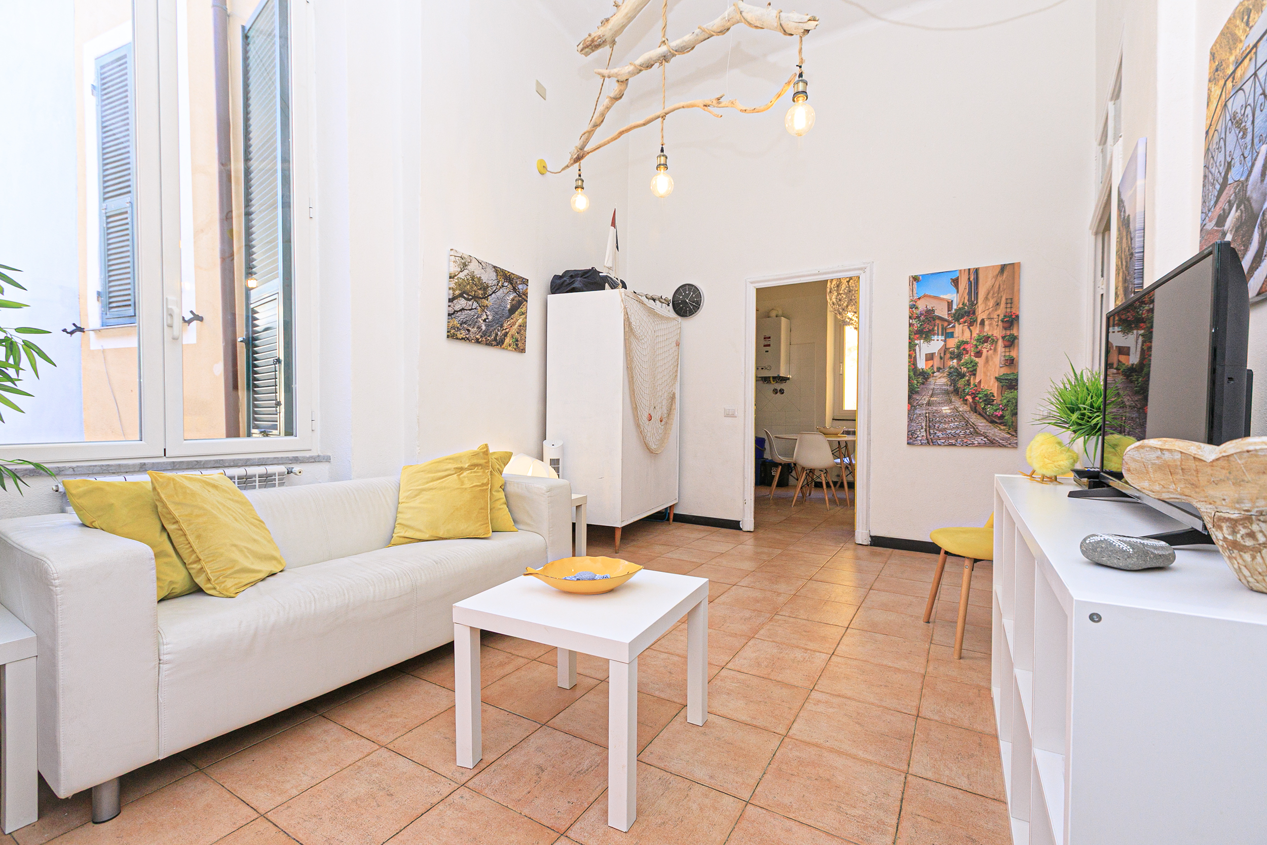 un grande e suggestivo SALONE con il soffitto AFFRESCATO e completo di CUCINA A VISTA, BAGNO, CAMERA DA LETTO MATRIMONIALE, un secondo SOGGIORNO, una CUCINA ABITABILE, una CAMERA MATRIMONIALE, BAGNO, e un’ altra STANZA ARMADI. Si presenta in ottime condizioni, e grazie alle grandi altezze delle stanze è molto luminoso. Suggestivo lo spazio esterno, un poggiolo che si affaccia nel carruggio con vista mare. Data l’attuale sistemazione quindi questo appartamento è perfetto per continuare ad essere messo a reddito e nello stesso tempo è facilmente rimodulabile per diventare la vostra nuova casa al mare. La posizione è unica, comoda ai servizi e al mare e alla spiaggia raggiungibili in pochi passi. L’immobile, può essere venduto completo dei suoi arredi.